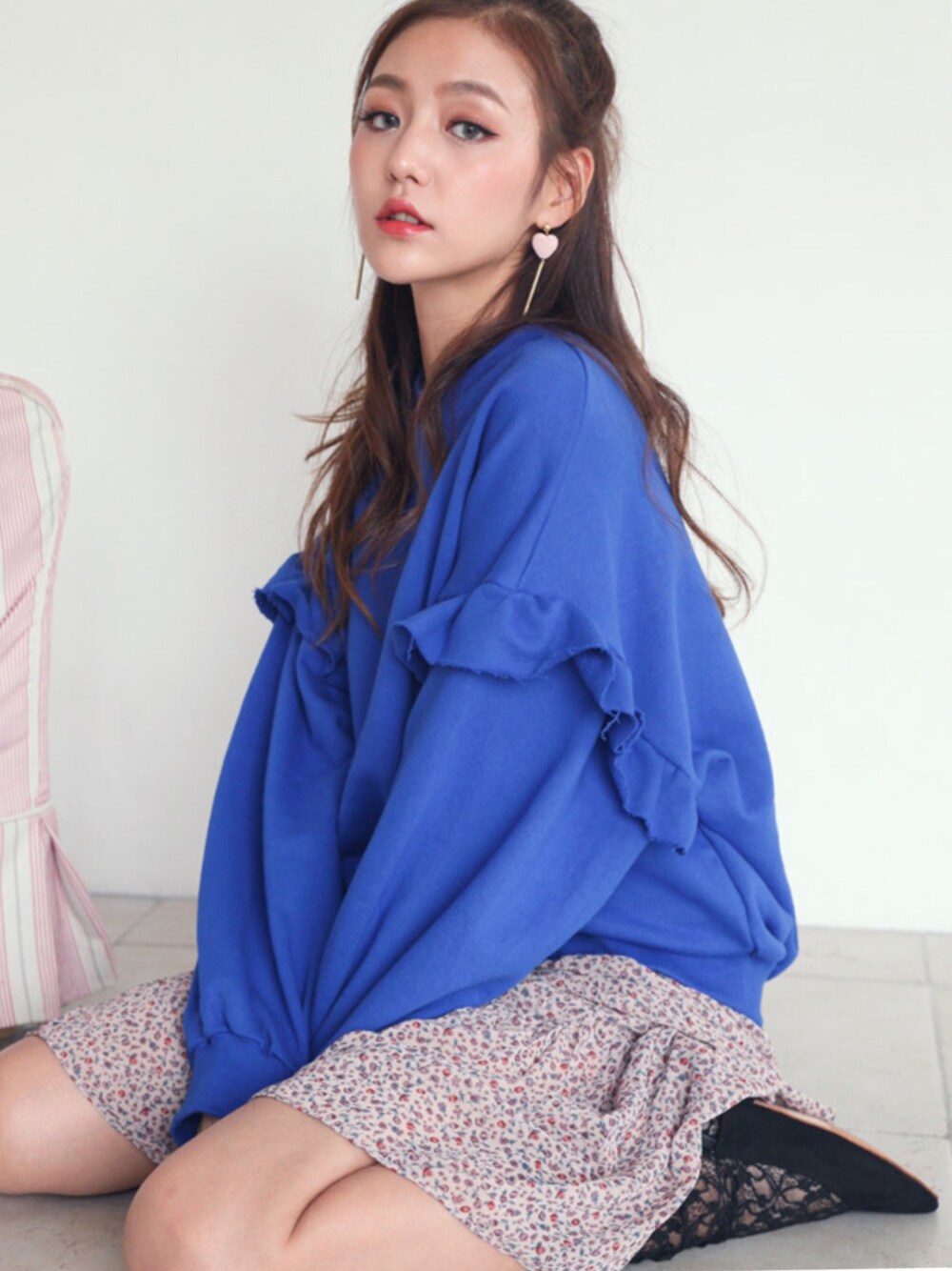 【フリルスリーブスウェットプルオーバー】 春まで使える活用度の高い ワンアイテムをご紹介します! デイリールックの大定番でもある スウェットトップスが今年らしさを 取り入れたオーバーサイズで登場。 トレンド感UP!したフリルポイントの デザインが愛らしい魅力をプラスします。 爽やかで豊富なカラバリにも注目! リブ処理の仕上げで、クオリティ高い。