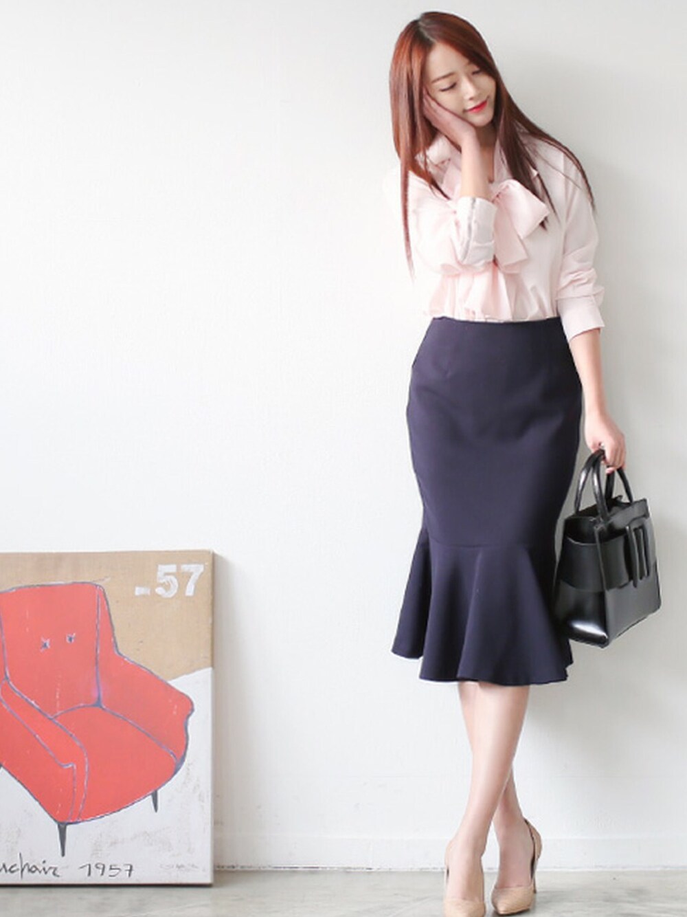 kormarchのハンドバッグ「レザーリボンバッグ」を使ったコーディネート