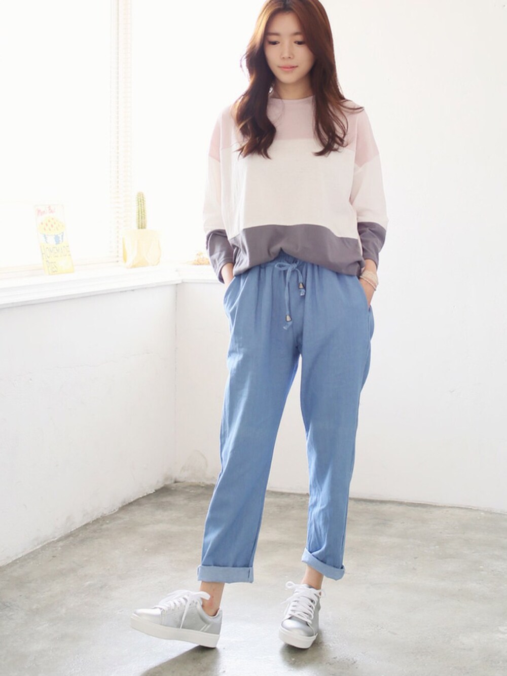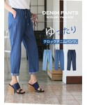 【送料無料】【ゆったりクロックデニムパンツ。】 トレンドのクロップド丈が使えるドローストリングデニムパンツ。裾は折り返して着ると足首をすっきり見せ、細身え効果も。 ウエストはゴム&紐で調節が可能なので着心地がよく着脱も楽々。 商品コード : 160321pt1 価格 : 2,190円(税込)