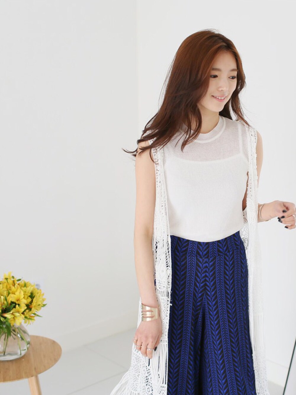 kormarchのベスト「フリンジニットジレ」を使ったコーディネート