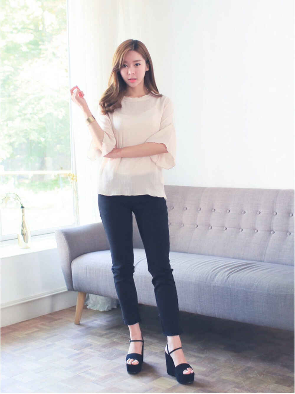 kormarchのシャツ/ブラウス「クルーネックフリルスリーブの涼しげな夏のしわよりシフォン素材で作られたブラウス」を使ったコーディネート
