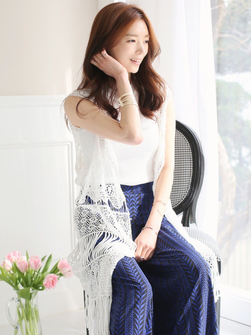 kormarchのベスト「フリンジニットジレ」を使ったコーディネート