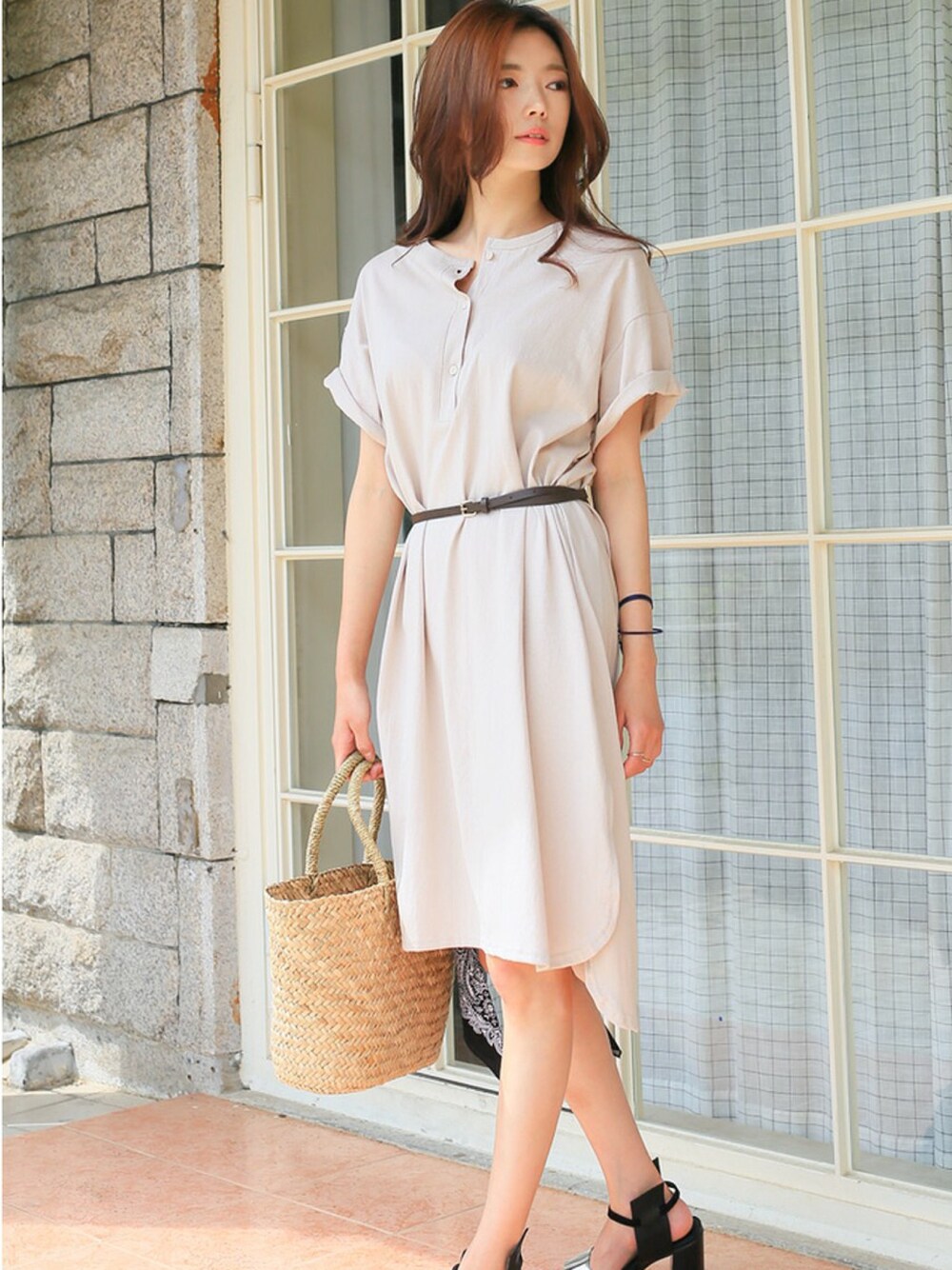 kormarchのワンピース「サイドスリットコットンロングワンピース」を使ったコーディネート