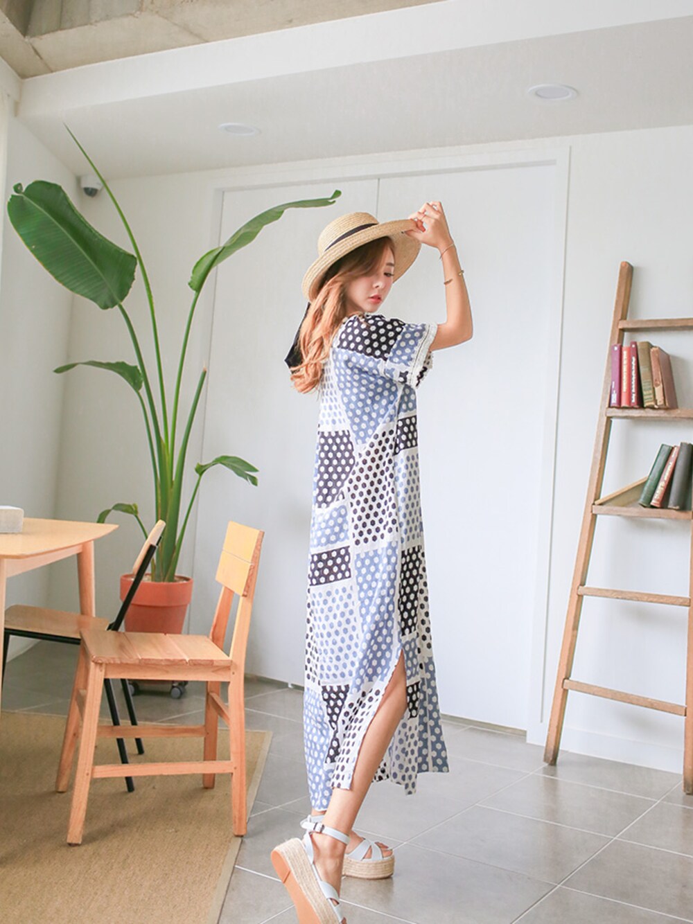 【メール便対象商品】【ドットロングワンピース】 *デコルテを美しく見せるVネックラインインナーが見えないギリギリのところに計算されたネックラインは、鎖骨を美しく見せてくれる女性らしいデザイン。二の腕カバーのルーズシルエット 商品コード : 160707ops1 価格 : 10,314円(税込)