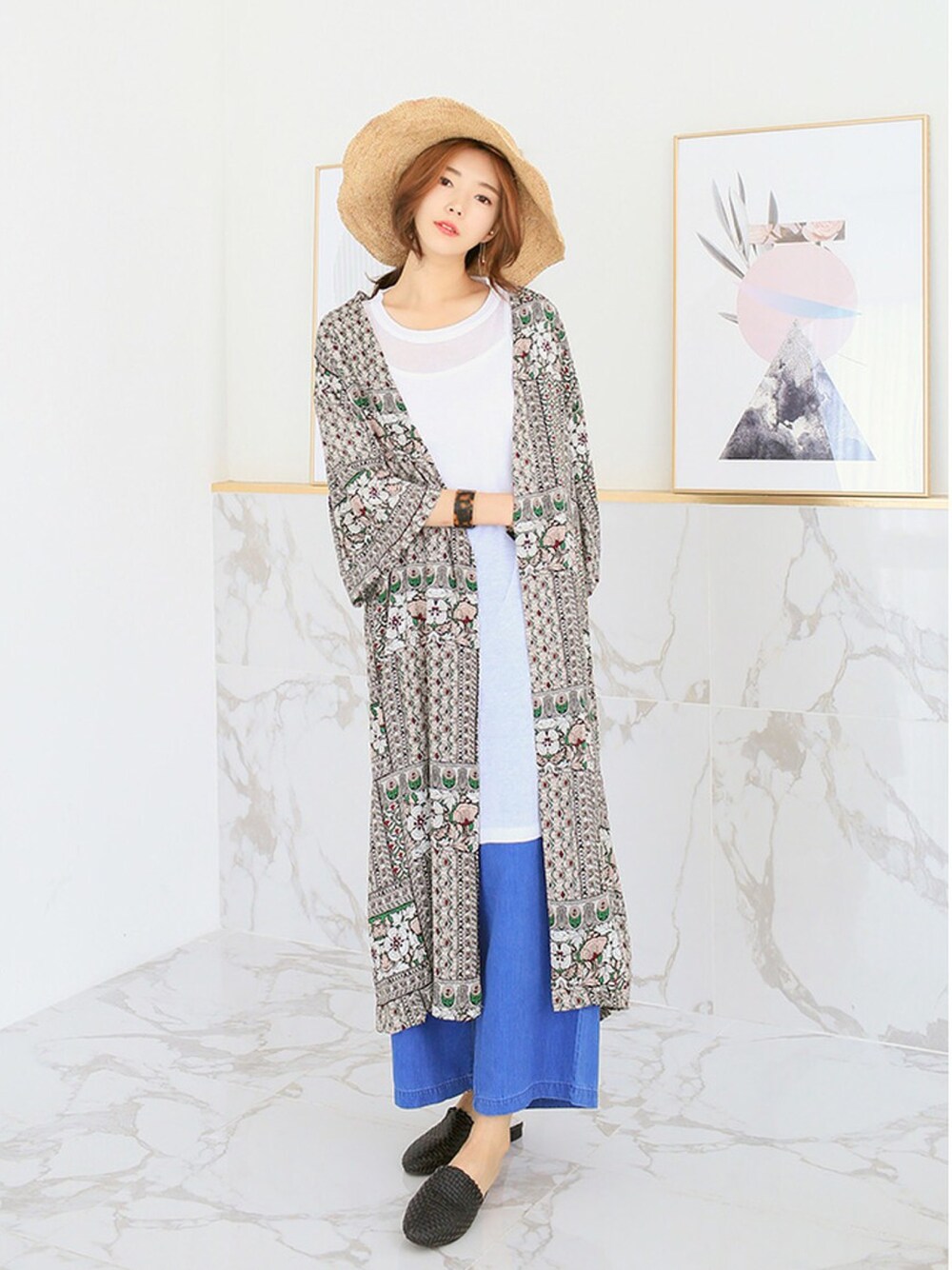 kormarchのカーディガン/ボレロ「総柄ロングカーディガン」を使ったコーディネート