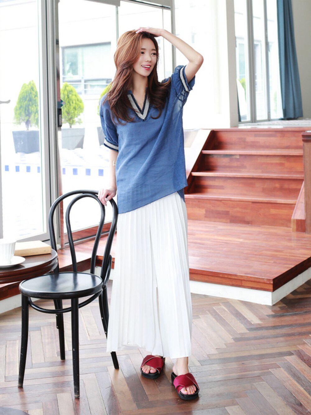 【メール便対象商品】【Vネックポイントプルオーバー 】 ボクシーなTシャツを首元のラインポイントで一気に女性らしく仕上げた一着です。肩を落としたオーバーなサイズ感が演出もしやすい♪ 商品コード : 160718bl1 価格 : 6,069円(税込)