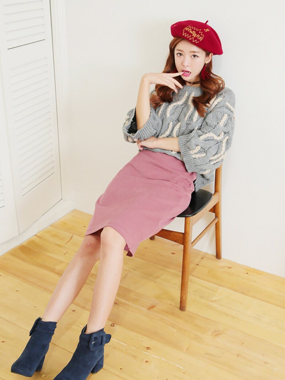 kormarchのハンチング/ベレー帽「ししゅうベレー帽」を使ったコーディネート
