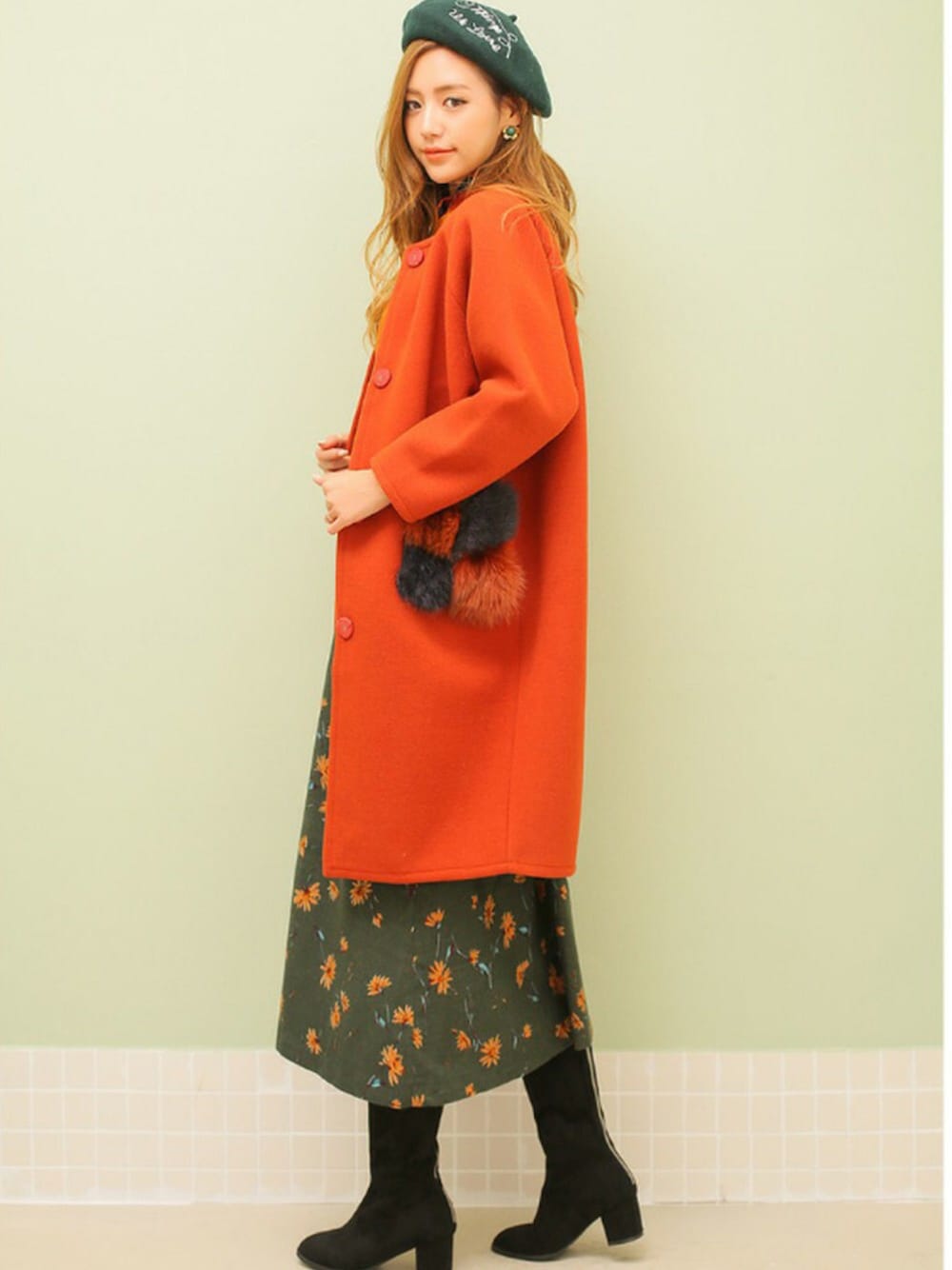 kormarchのピーコート「配色ファーポケットコート」を使ったコーディネート