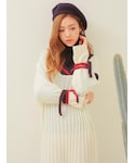 【Vネックリボン袖のポイントワンピース】 ルーズなバランスが今っぽいチルデンニットワンピースで袖部分にリボンポイントがラブリーなニットワンピースです。 深めのV字ネックで女度アップ。 ラフながらもレディな一枚! 配色でポイントを与えたVネックディテールがユニークさアップ! くたっとしたシルエットながらもしっかりと女性らしさを感じさせるこだわりのあるデザインです。ざっくりとした編み感のおかげでこなれカジュアルな印象に。 黒ソックスにフラットミュールでハイネックのトップスとレイヤードがいいかも。