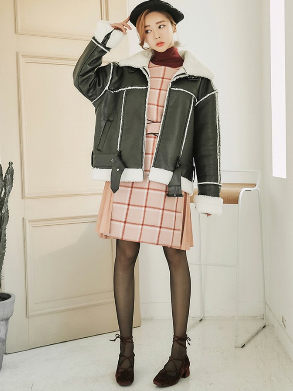 kormarchのその他アウター「フロントジップフェイクムートンジャケット」を使ったコーディネート