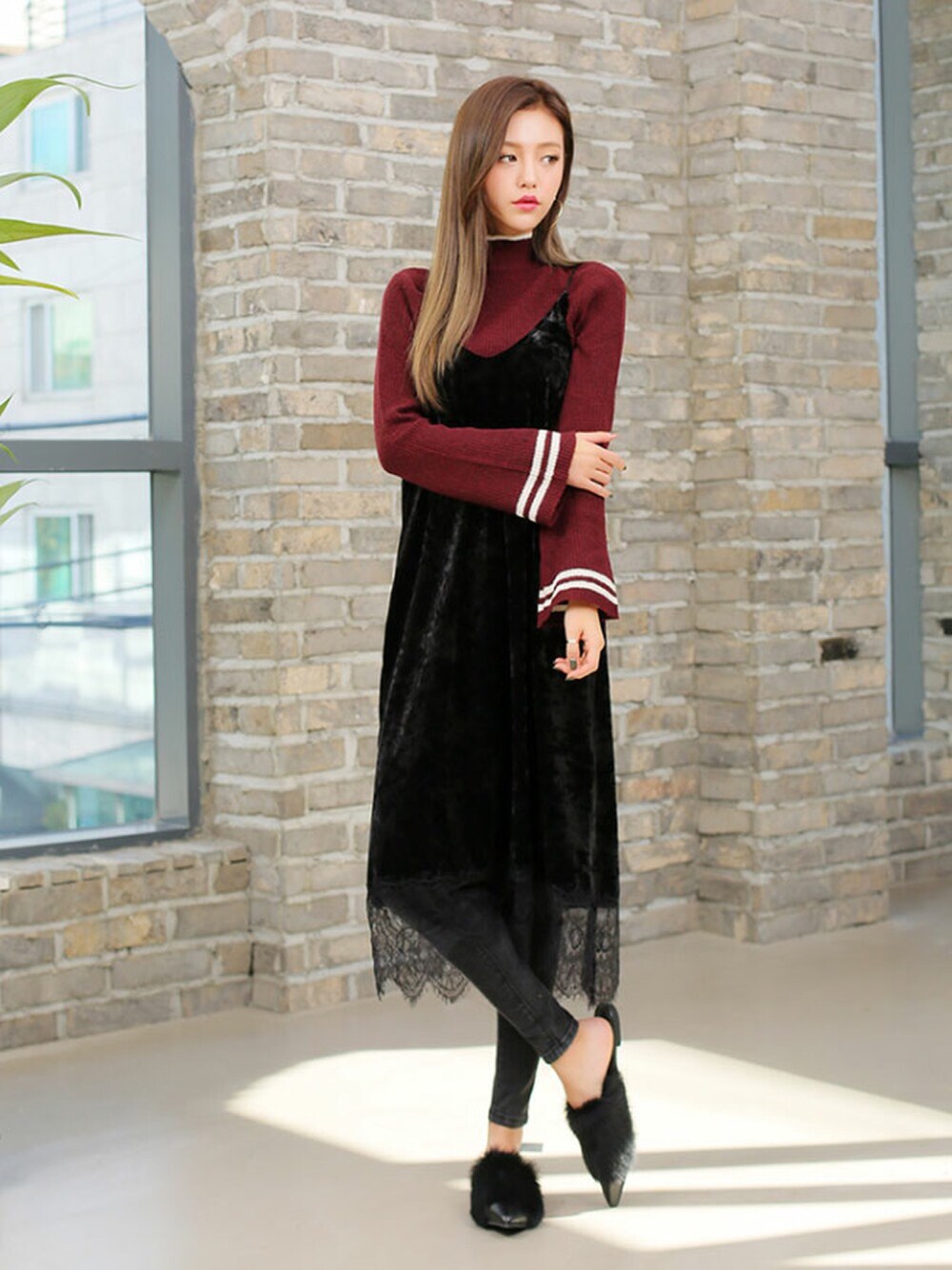 kormarchのその他シューズ「ポインテッドトゥファーフラットミュール」を使ったコーディネート