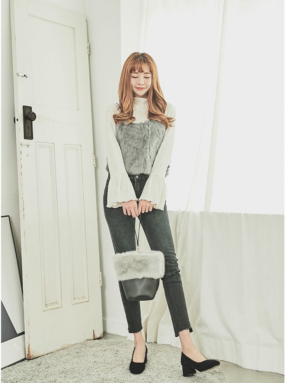 【リアルウサギファービスチェ】 前後両方のウサギのファー100%でデザインされたビュスチェです。 特別なディテールがなくてもユニークなルック完成! 柔らかな肌触りの豊かな広がりの注目! 魅力的な4カラーの冬の似合うビュスチェの構成です。
