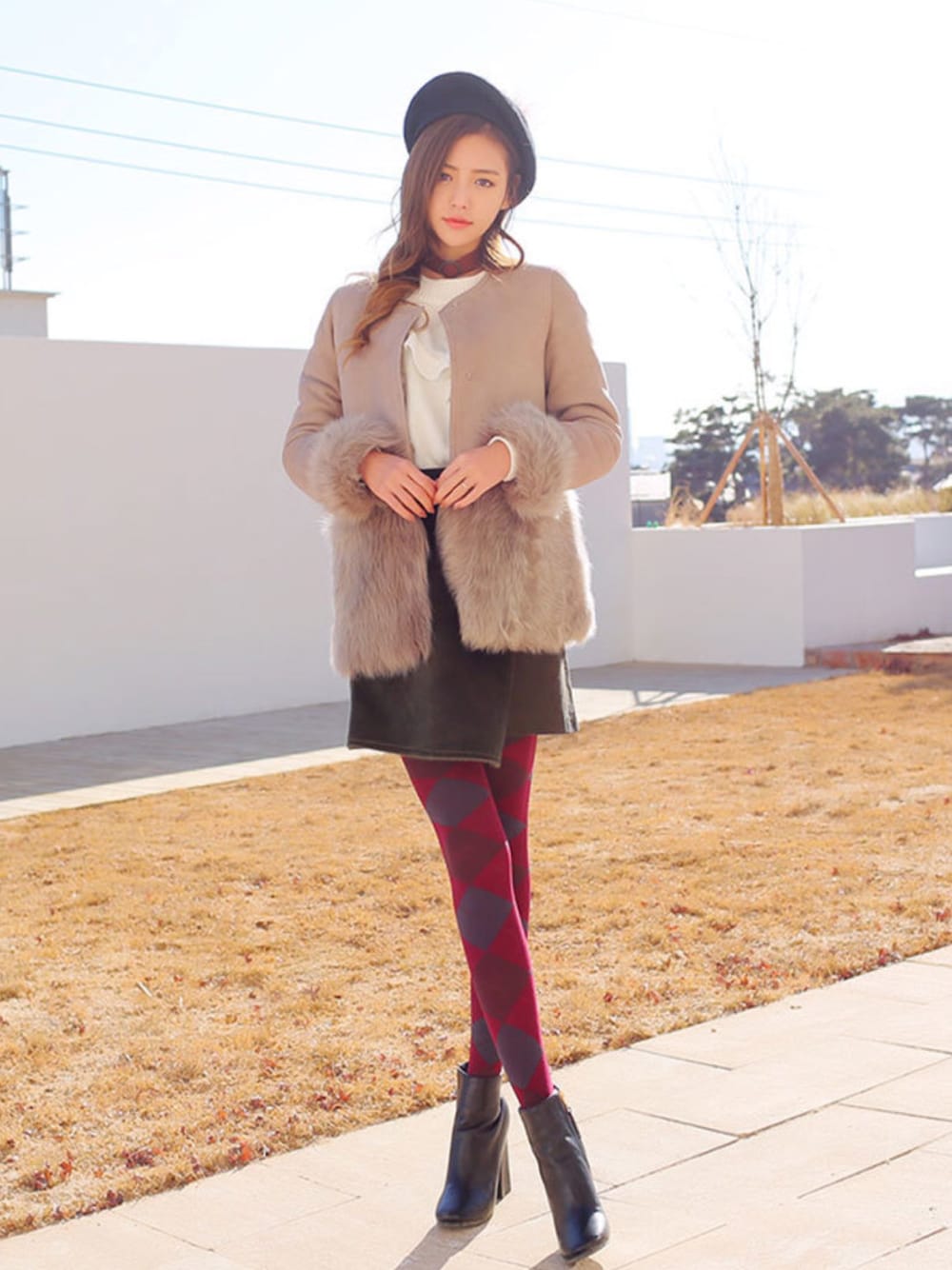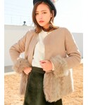 kormarchのノーカラージャケット「ハーフファーポイントムートンジャケット」を使ったコーディネート