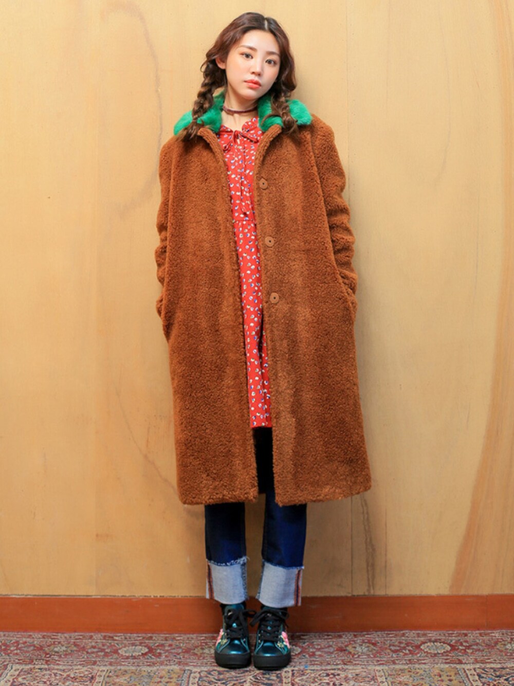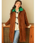 kormarchのダウンジャケット/コート「2WAYタイプ配色ロングボアコート」を使ったコーディネート
