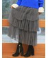【3段ティアードチュールスカート】 ふんわりとしたシルエットが女性らしいチュールスカート。 裾から覗くチュールがポイント。 ニットやカジュアルなカットソーとマッチすると、存在感あるルック完成。