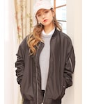 【シャーリングポイントオーバーサイズMA-1ジャケット】 デザイン性の高さを感じられる 個性のたっぷりきいたMA-1ジャケット。 流行りのビッグシルエットが旬顔! 袖は存分にシャーリングをきかせて 愛らしいボリューム感をメイク。 袖・裾を幅感あるリブでまとめより ボリューミーに仕上げました。