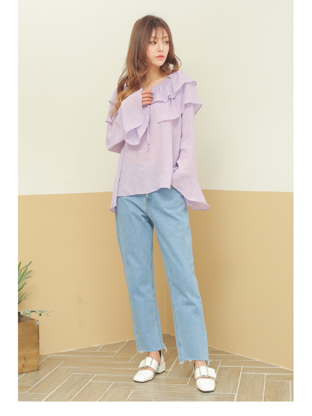 kormarchのシャツ/ブラウス「ネックストラップラッフルブラウス」を使ったコーディネート