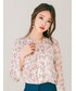 【フレアスリーブフローラルブラウス】 ラッフルで女性らしさを表現した 花柄ブラウスをご紹介いたします。 少しシースルーで清潔感に溢れそこに 咲く小花で上品さを演出しました。 Vネックラインに沿いラッフルを 飾ったエレガンスなディテールが魅力的! 同系色やスキントーンのキャミを重ねて透け感を抑えると着やすい。 カジュアルなストレートジーンズ、スラックスの合わせで大人っぽさを 与えたスタイリングがおすすめです。