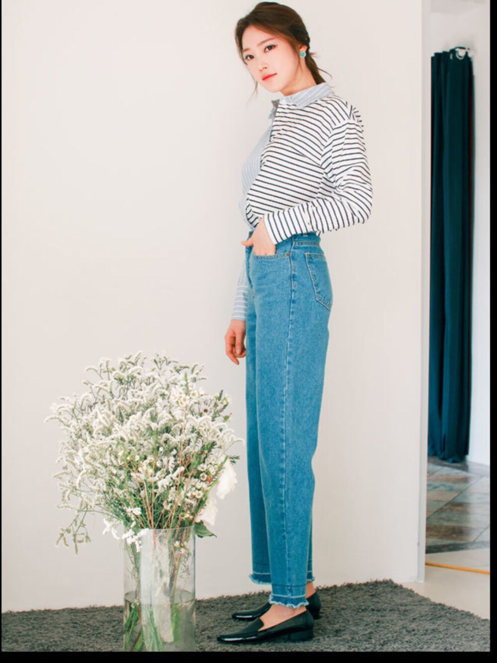 【配色ポイントシャツ】 配色ラインが華やかなストライプ パターンシャツをご紹介します。 ポイントカラーを配したデザインで、 左右異なるストライプ柄が独特な表情です。 太すぎないラインの施しが ちょうどいい存在感を発揮。 また、ゆったりとしたサイズでヌケ感あるシャツです。