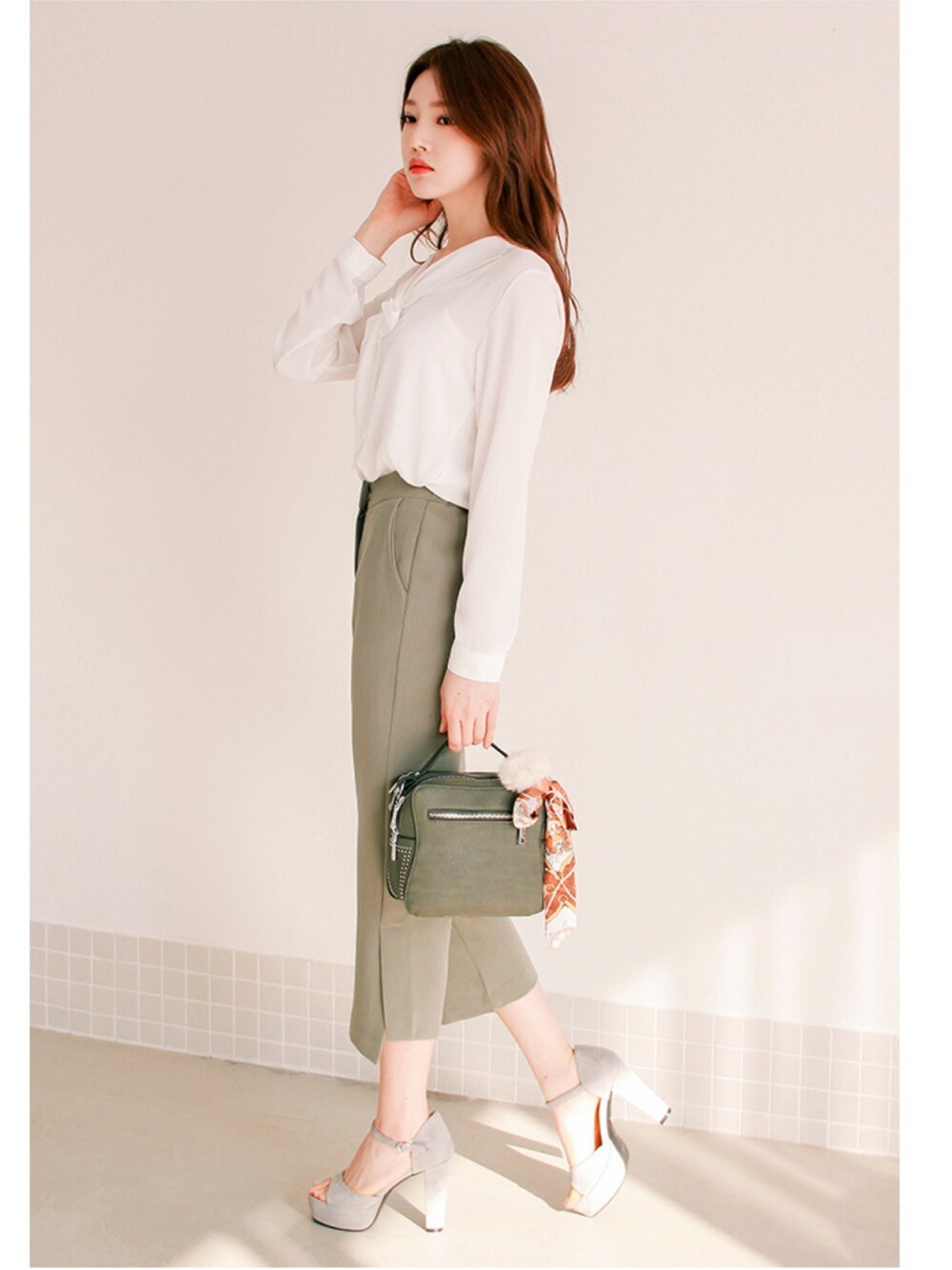 kormarchのシャツ/ブラウス「カラーストラップVネックブラウス」を使ったコーディネート
