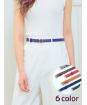 【6色リングポイントベルト】 ユニークなバックルが一見シンプルながらも洗練な印象を与えてくれます。 ツヤを抑えた合皮の質感で落ちついた雰囲気に仕上げました。 6色の展開がコーデに楽しめるカラーバリエーション! パンツにはもちろんベーシックなワンピースのアクセントなど様々な 演出が楽しめるアイテムです。