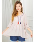 kormarchのTシャツ/カットソー「3色タッセルポイントエスニックブラウス」を使ったコーディネート