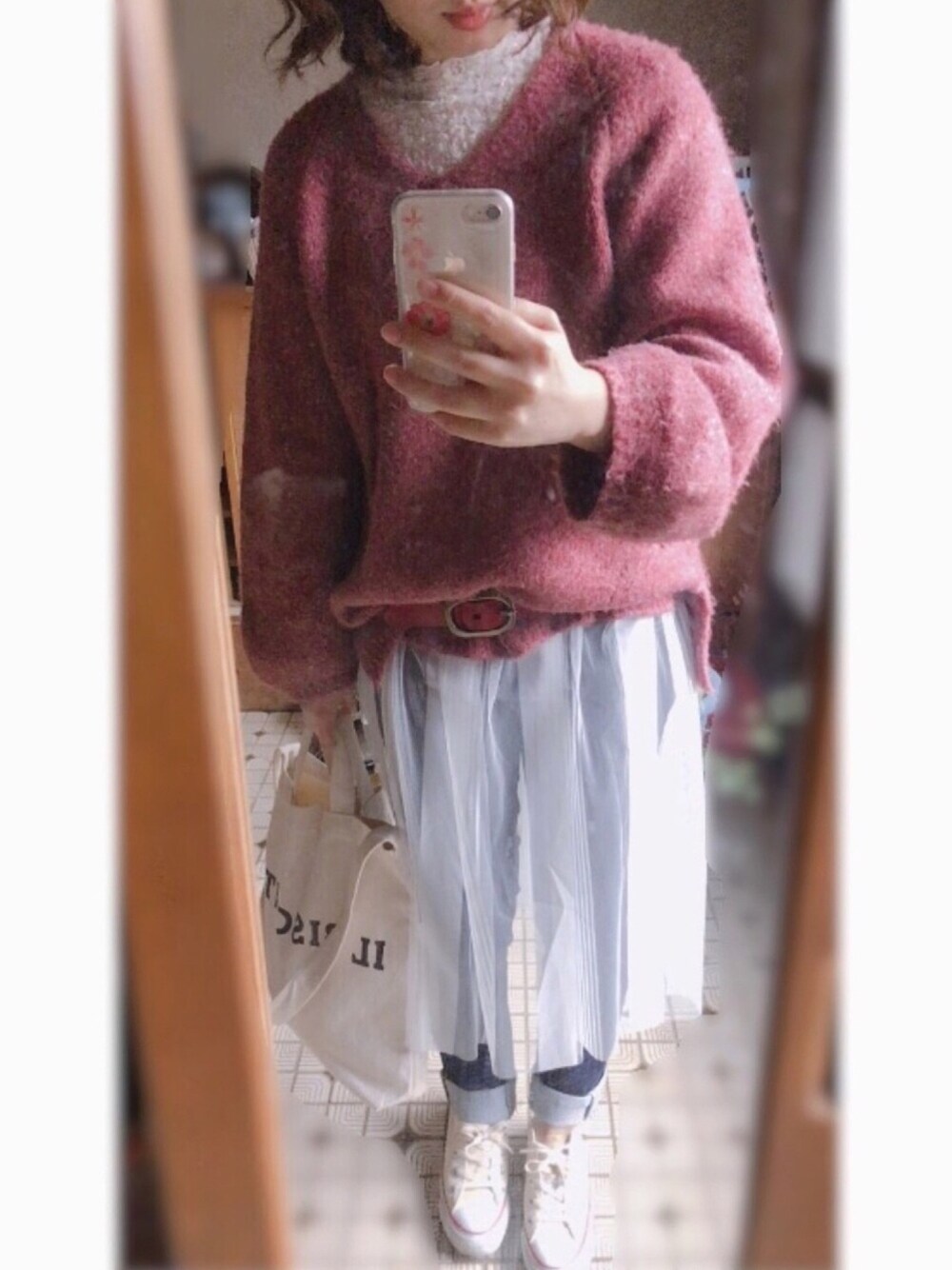 koroღのニット/セーター「この色に惹かれた♡ ピンク?赤?どっち?笑」を使ったコーディネート