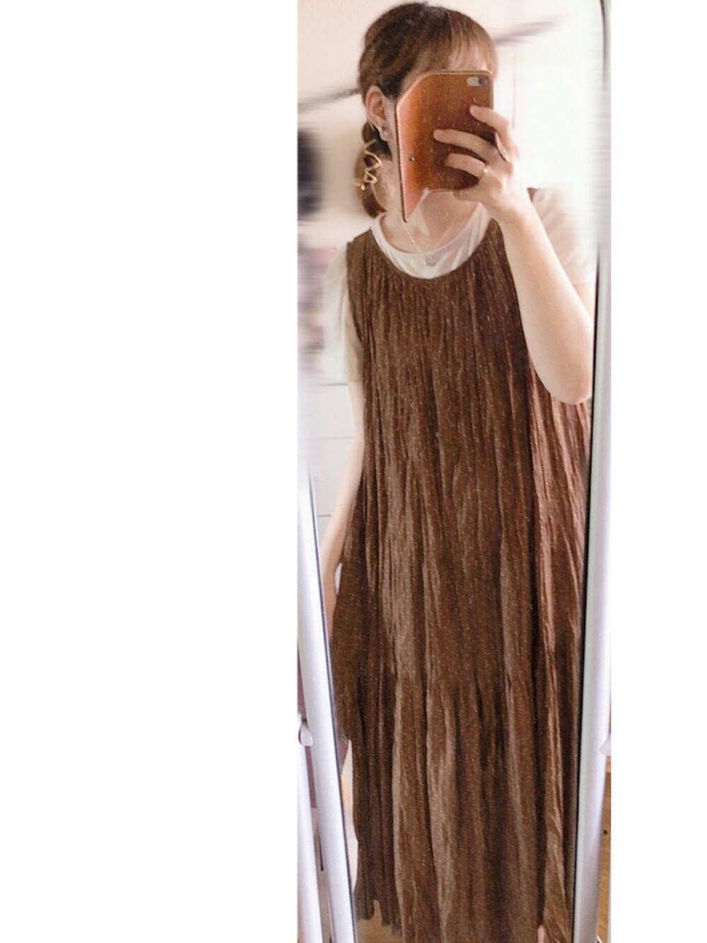 koroღのワンピース「ツイストプリーツワンピース(ノースリーブ)」を使ったコーディネート