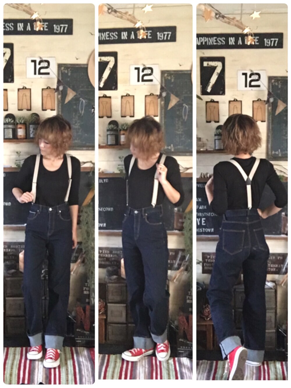 作業員か! 笑 サスペンダーってこんな可愛い かったっけ? ♡だわ。