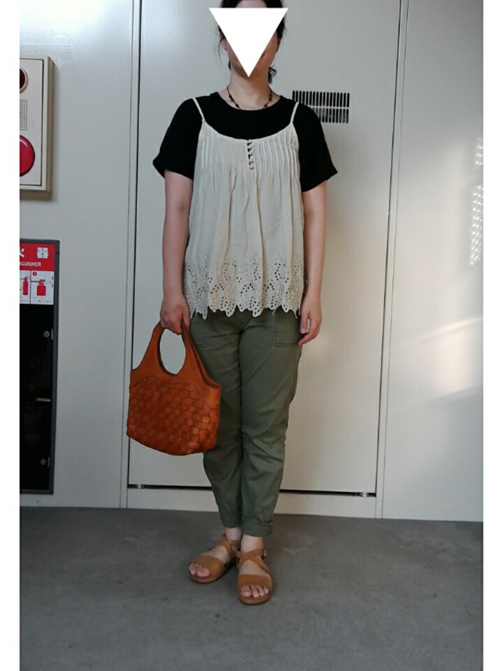 キャミソールの着まわしで。黒Tシャツの上に重ねるとまた印象も変わります。 一見わからないけど、赤のネックレスをつけてポイントに。 WEAR始めて、服の整理がさくさく進むようになりました。顔を隠しているとは言え、人に見せたくない服はいらないものなのだと。皆さんのいいねの数で、どんな服が好まれるのか参考になって楽しいです。