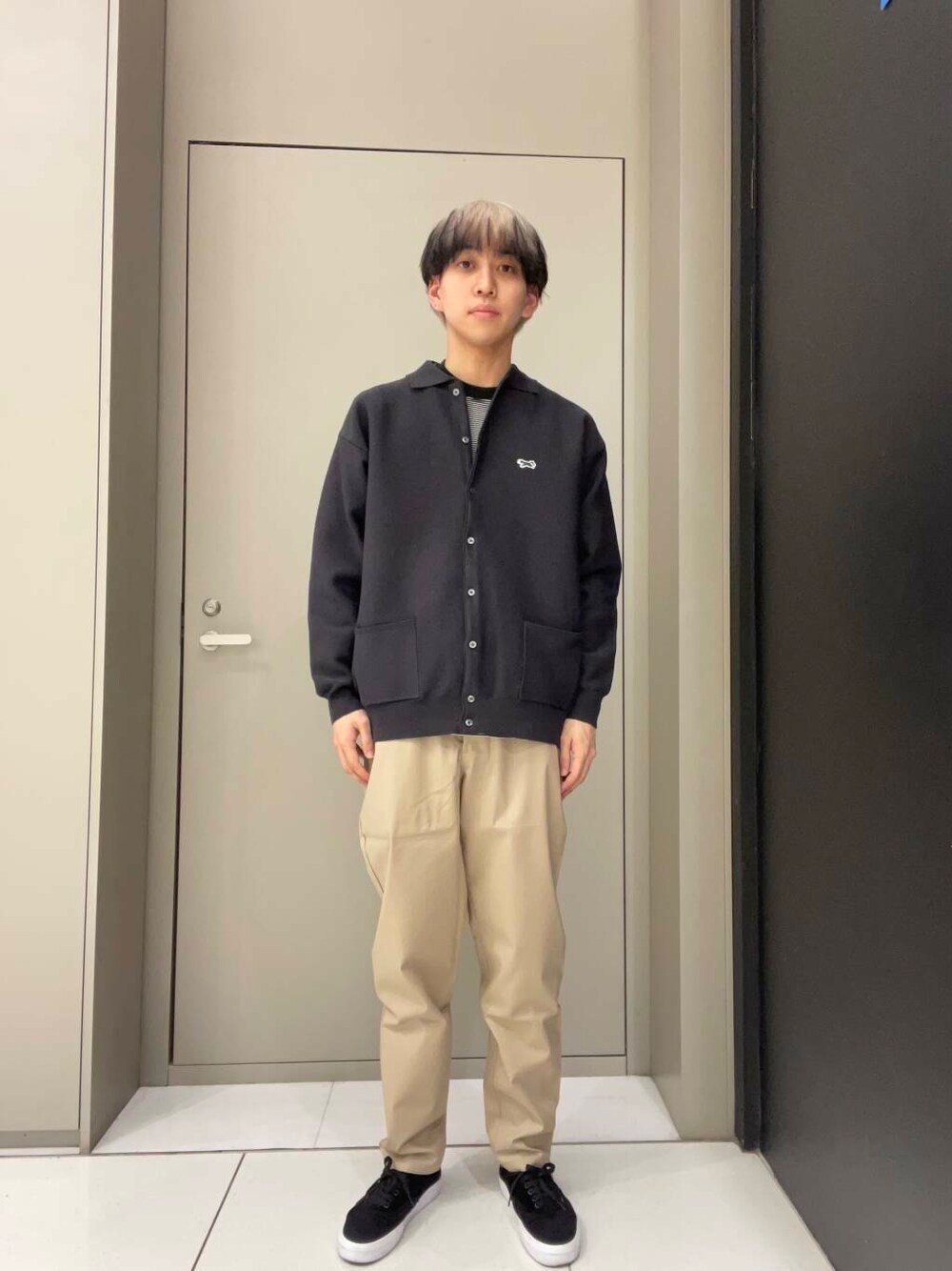 こんにちは! 今日はキツネのロゴがついたthe foxのカーディガンをメインに使ったコーディネートです! 可愛らしいロゴですが合わせるアイテムによっては かっこよくキメれる万能アイテムになっています! 今回はボーダーTを中から覗かせ、チノパンで暗すぎない合わせにしました! ぜひ参考にしてみて下さい🙇