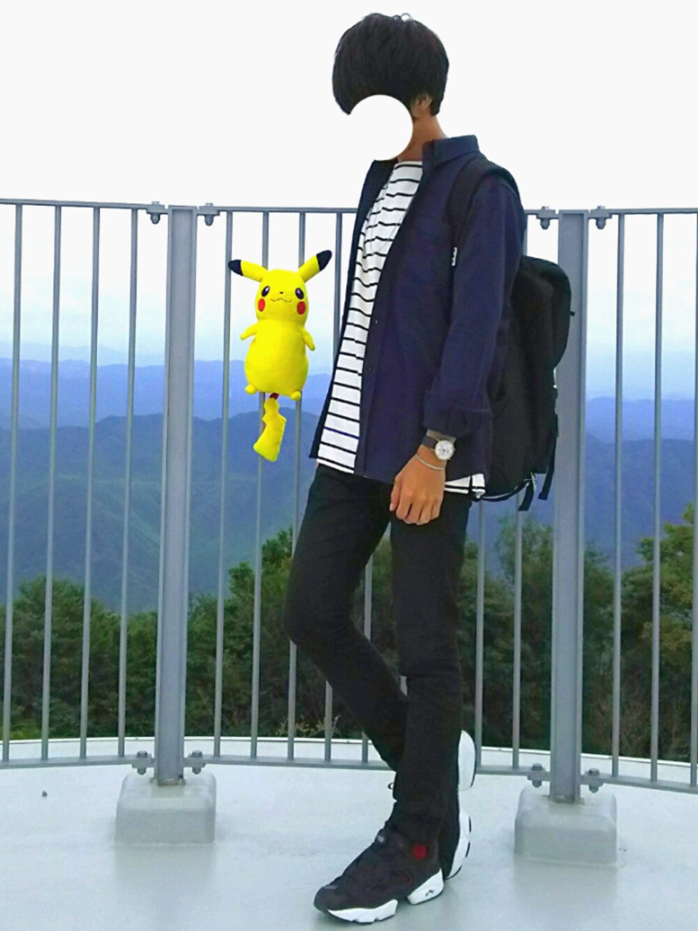 景色が良き。 ボーダーT×ネイビーのシャツ ピカチュウ▼o'ᆺ'o▼⚡ 《 サイズ 》 インナー・M シャツ ・M ボトムス・28 シューズ・26.5