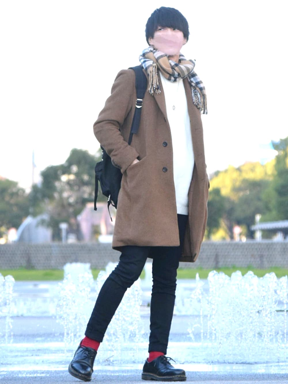 チェスターコートコーデ* 赤の靴下をアクセントに✨ ☑️Instagram▶kose_wear ( ´ ꒳ ` )ノ