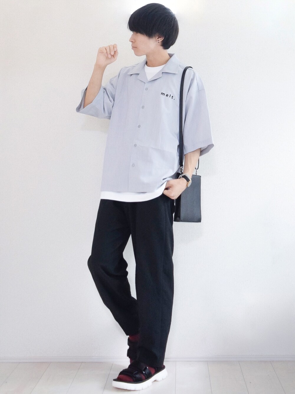 【開襟シャツコーデ✨】 こちらのオープンカラーシャツは ぼーんくんのブランドmelt.のものです!😊✨ ライトグレーの色味が可愛い! くすみカラーでトレンド性も⭕ 胸元にはブランドロゴも入っていて ワンポイントで可愛いアイテムです!🕺 気になる方はチェックしてみてね!✨ ☑️Instagramのkose_wear ( ´ ▽ ` )ノ