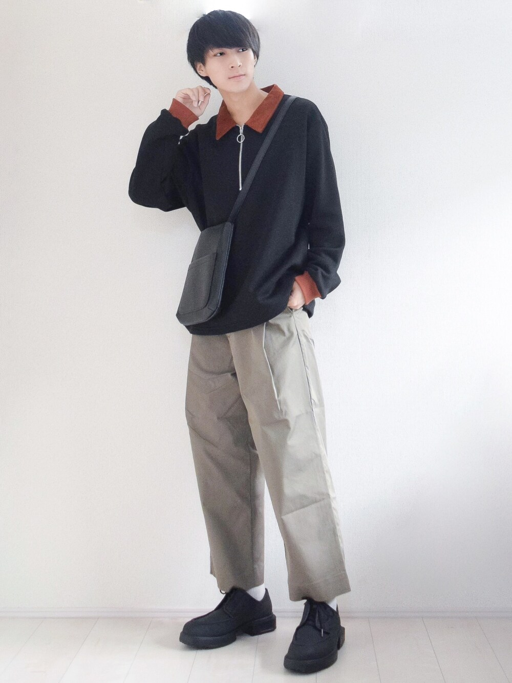 こーせ︎︎︎︎︎︎︎︎のスウェット「ファッションインフルエンサー こーせ × INTER FACTORY 襟コーデュロイハーフジップスウェット」を使ったコーディネート