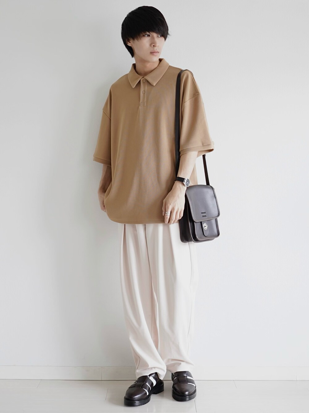 こーせ︎︎︎︎︎︎︎︎のポロシャツ「リップルプリーツビッグシルエットポロシャツ」を使ったコーディネート