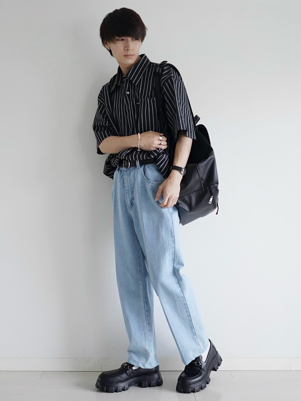 【ストライプシャツコーデ✨】 CREARE -LINO-のストライプシャツを使ったコーデ! 夏らしい淡色デニムにタックインした キレイめカジュアルコーデに🙆🏻 ☑️Instagram▶︎kose_wear ( ´ ▽ ` )ノ