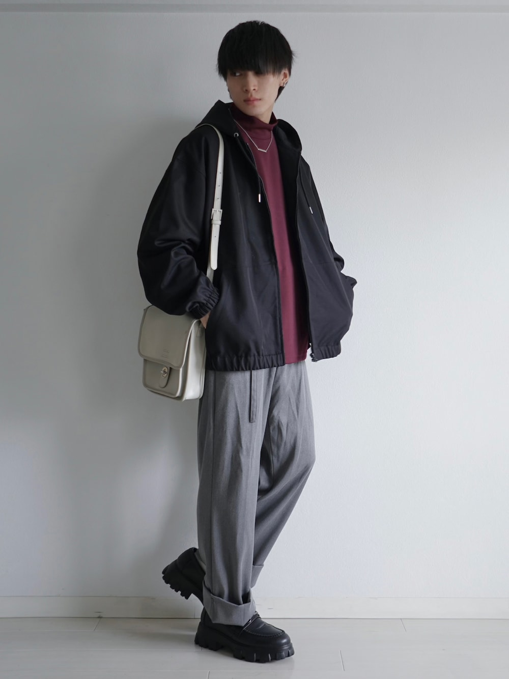 こーせ︎︎︎︎︎︎︎︎のブルゾン「スムースツイル ジップアップフーデットジャケット」を使ったコーディネート
