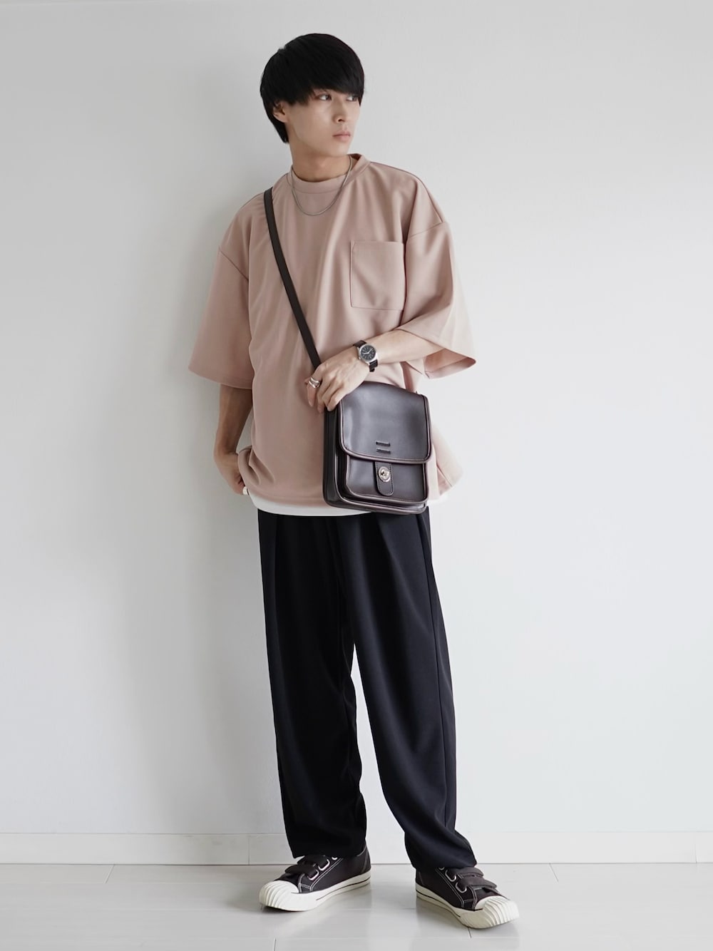 こーせ︎︎︎︎︎︎︎︎のTシャツ/カットソー「【2点セット】梨地ポケット付きクルービッグTシャツ&ロングタンクトップアンサンブルセット」を使ったコーディネート
