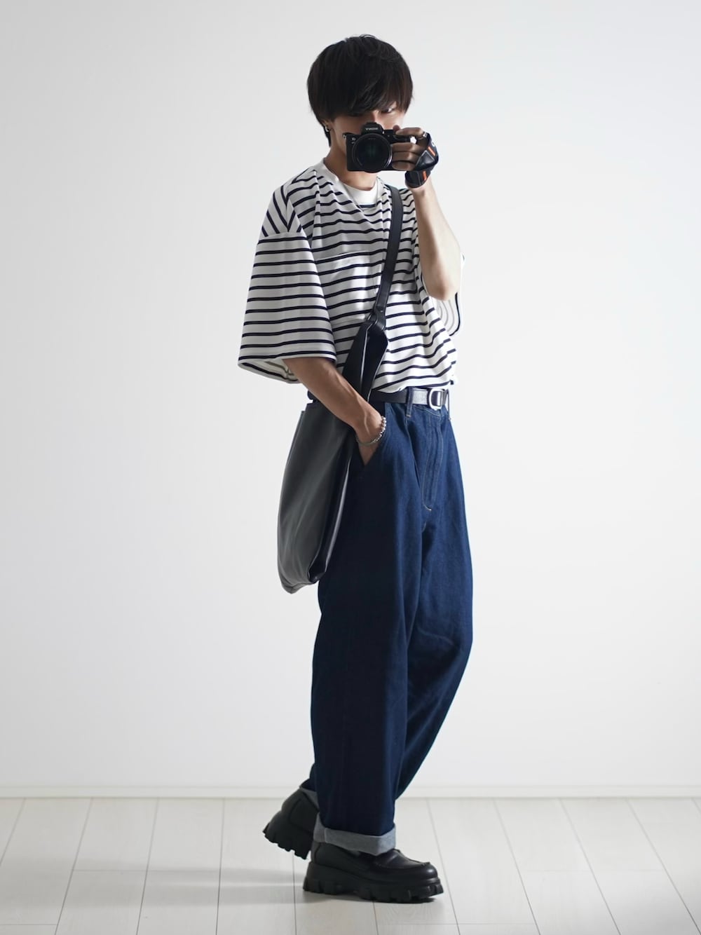 こーせ︎︎︎︎︎︎︎︎のTシャツ/カットソー「【2点セット】梨地ポケット付きクルービッグTシャツ&ロングタンクトップアンサンブルセット」を使ったコーディネート