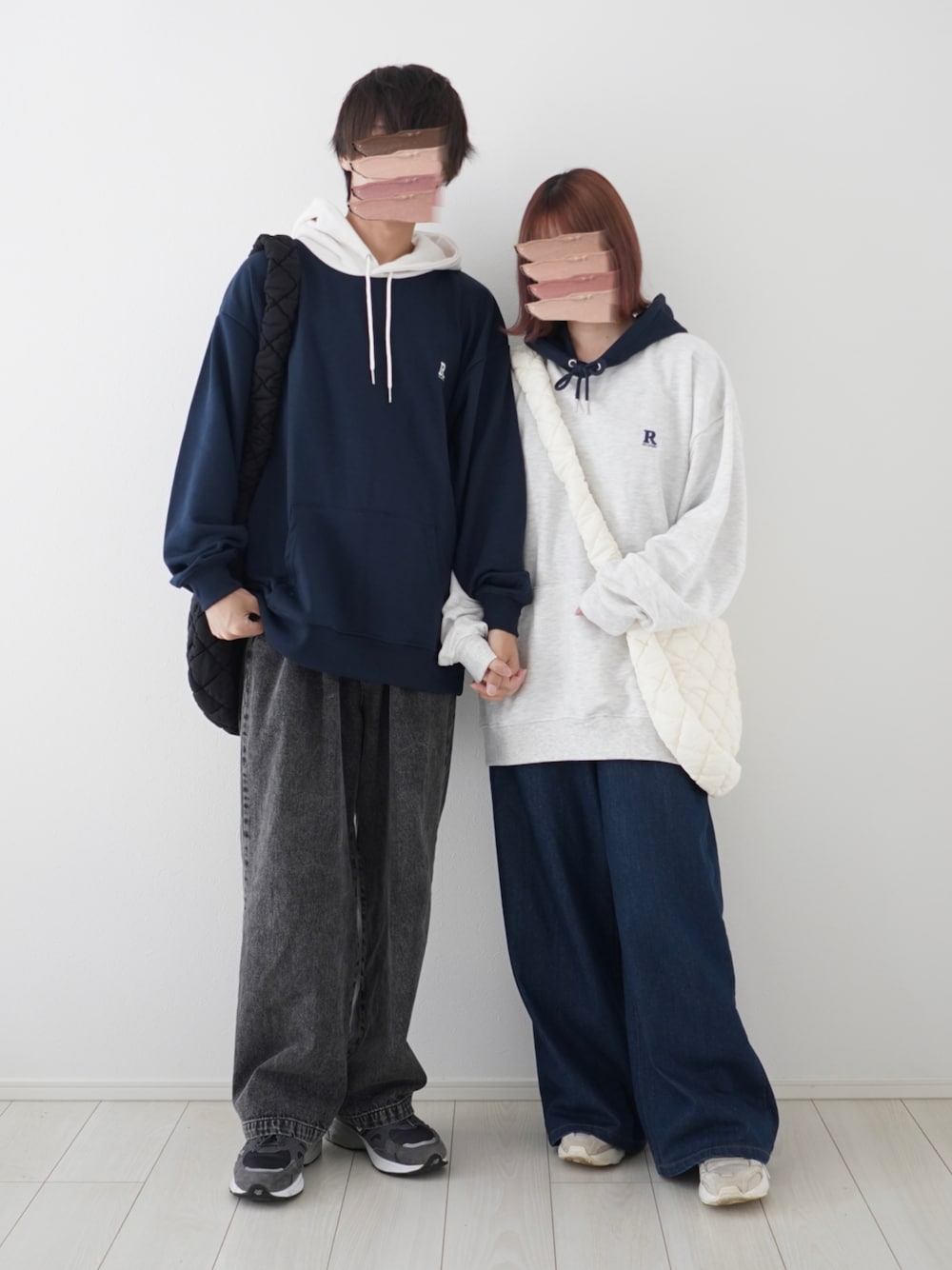 【パーカーコーデ】 red.cap.girl の新作パーカーを使ったコーデ! バック刺繍が可愛いゆるパーカー◎ TC裏毛 バック刺繍 ルーズサイズ 配色パーカー ネイビー / Lサイズ着用 ☑️Instagram▶︎kose_wear