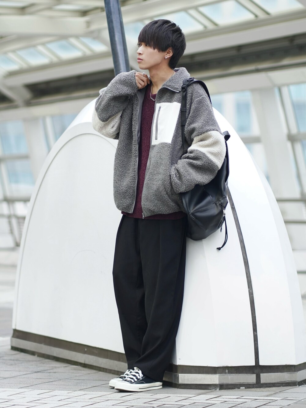 こーせ︎︎︎︎︎︎︎︎のブルゾン「【25AW】防風ボア袖ライン切替スタンドネックジャケット(ドローコード付き)」を使ったコーディネート