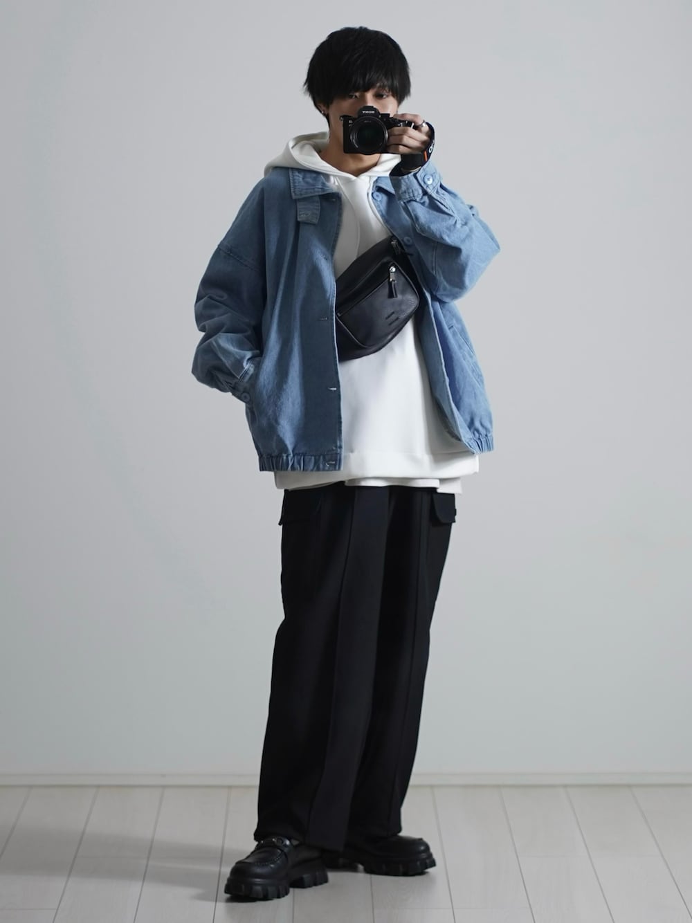 こーせ︎︎︎︎︎︎︎︎のブルゾン「2wayビッグシルエットショートブルゾン ポリピーチ/デニム」を使ったコーディネート