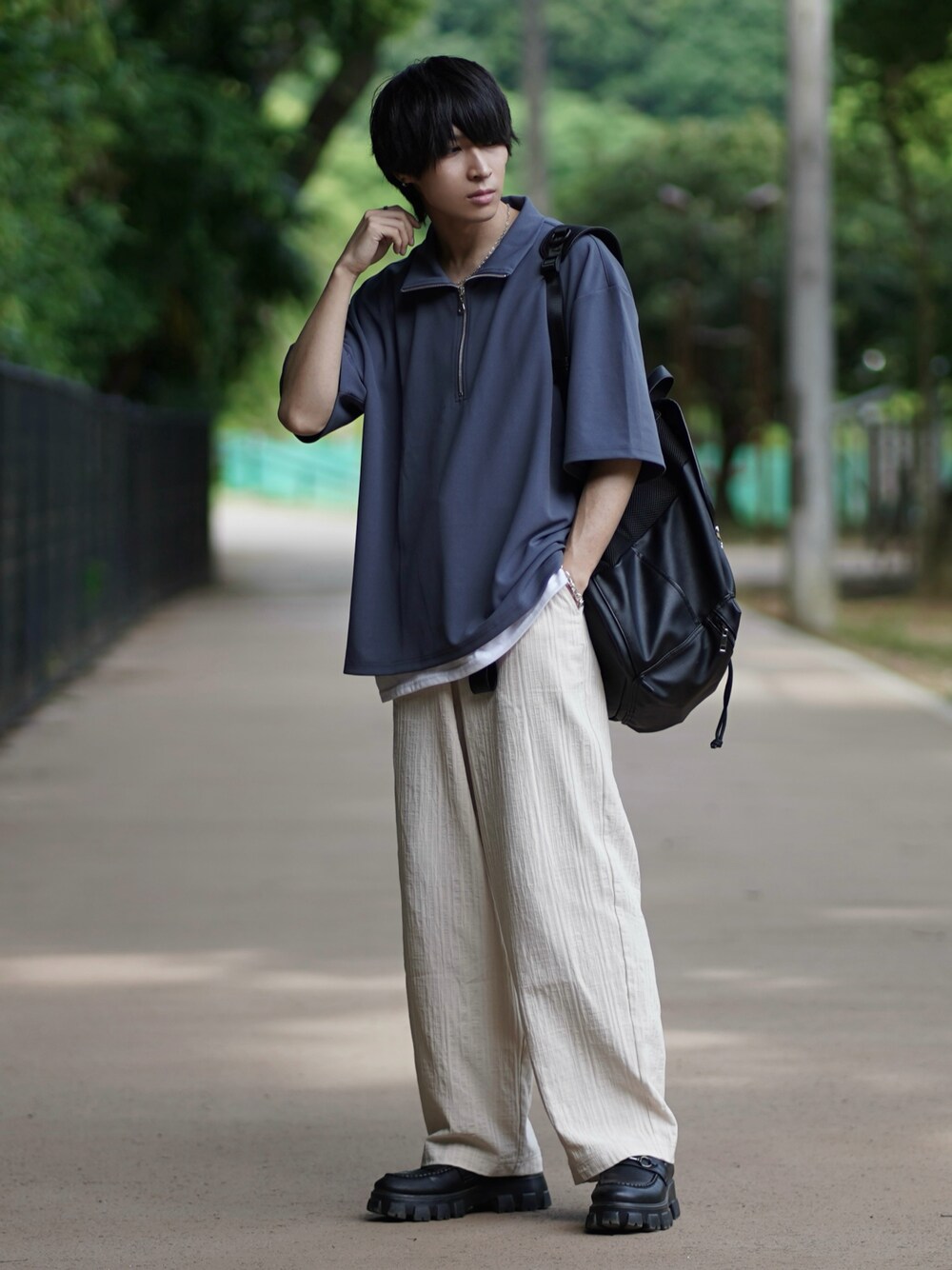 こーせ︎︎︎︎︎︎︎︎のTシャツ/カットソー「梨地ハーフジップ 半袖プルオーバー」を使ったコーディネート
