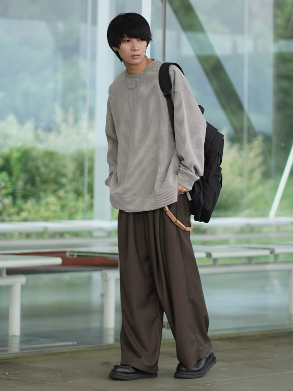 こーせ︎︎︎︎︎︎︎︎のスウェット「【25AW】カットコーデュロイ/ヴィンテージ加工クルーネックプルオーバー」を使ったコーディネート