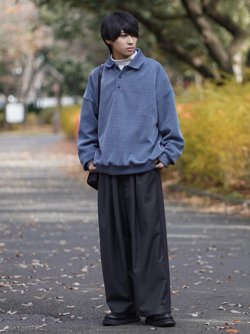 こーせ︎︎︎︎︎︎︎︎のポロシャツ「【25AW】カットコーデュロイ/ヴィンテージ加工 ポロシャツ」を使ったコーディネート