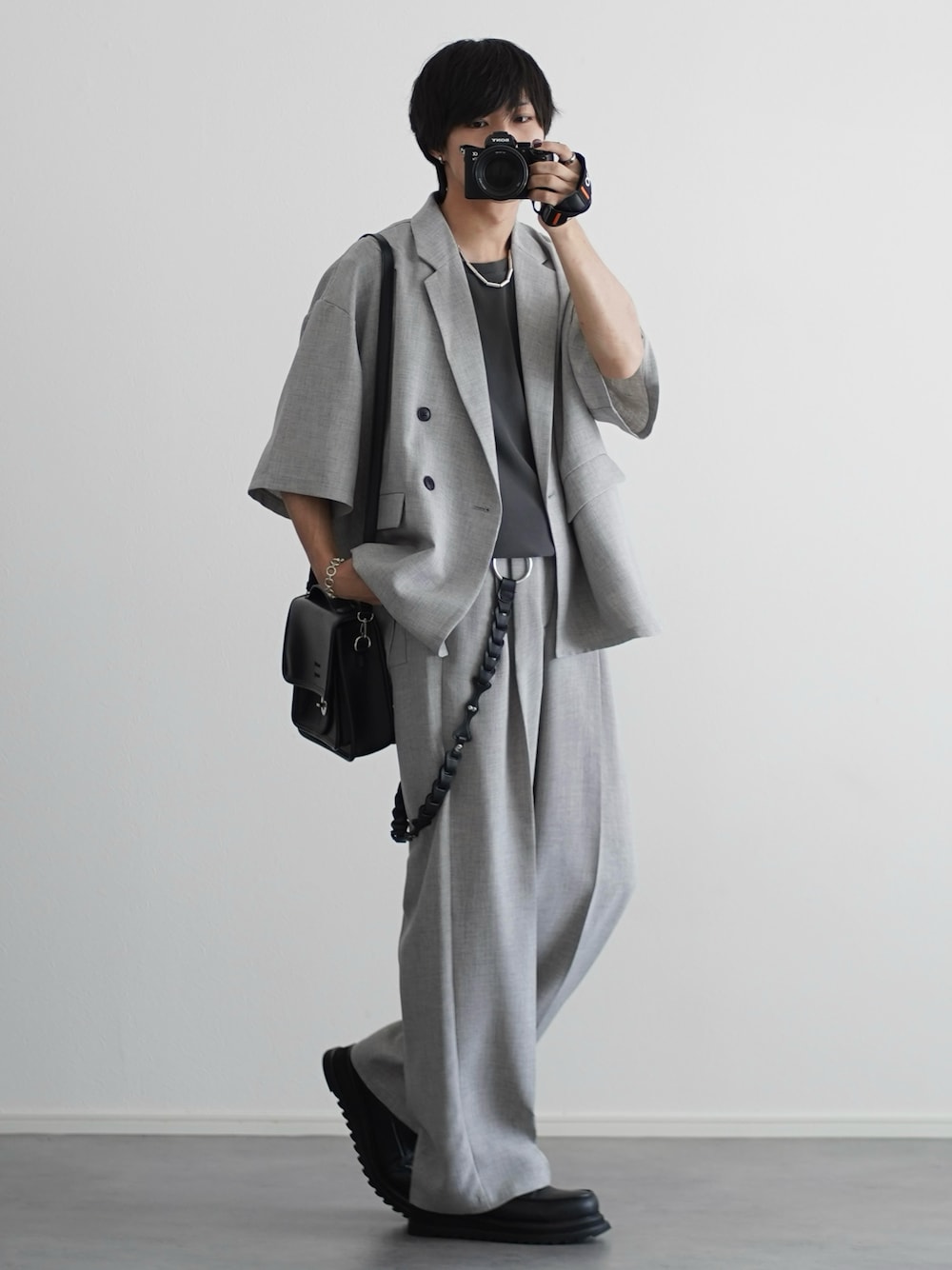 こーせ︎︎︎︎︎︎︎︎のセットアップ「【セットアップ 2点セット】TEC CANVASダブルテーラードシャツ+センタープレススラックス」を使ったコーディネート