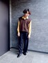 マスタードイエロー(からし色)って良い色だけど派手過ぎるかな…🟡 そんな時はベストと組み合わせると、落ち着いた全体像の中の素敵なアクセントになります。 POINT① シャツはオープンカラーのものを選び、存在感のあるネックレスを組み合わせてみました。 POINT② 足元はHARUTAの名作であるスポックシューズとUNIQLOのバレルレッグスラックスでシンプルにまとめています。