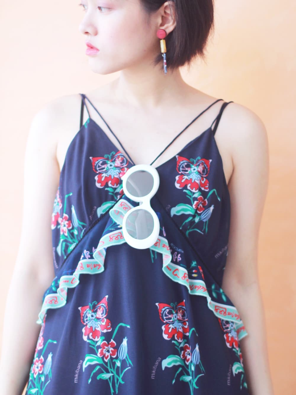 会社の柄ワンピースを着て、旅行に行った🏖 白いサングラスは香港のブランドで、年代感が感じられる単品だよね〜