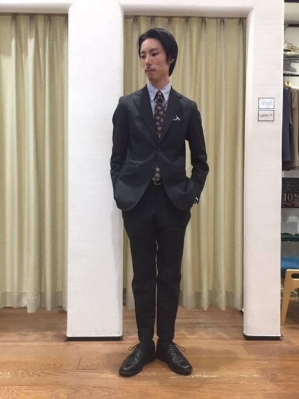 グレースーツはダークな色だと失敗しにくく、こなれた男を出せますよね。